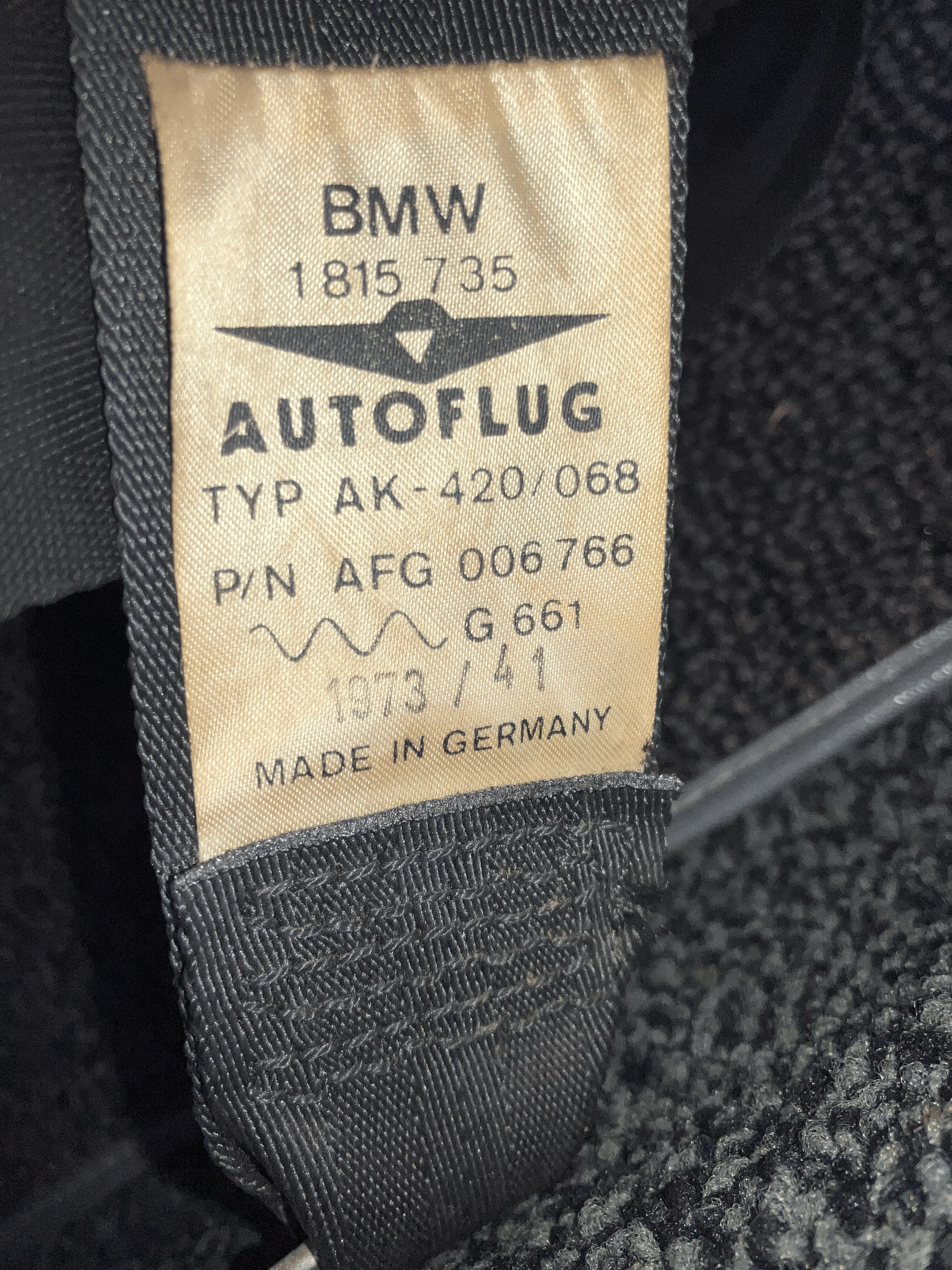 Der Gurt, der verbaut ist, ist nicht mehr der originale Gurt. Ich habe ihn aus einem Fahrzeug Bj. 1973 nachgerüstet, da bei meinem E3 nur statische Gurte verbaut waren. Hier das Typenschild: Vielen lieben Dank für eure Unterstützung.