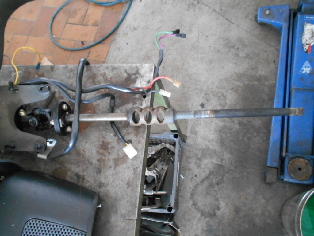 Der Fachboden der Mittelkonsole wird von zwei widerspenstigen Klammern in Position gehalten. Eine liegt rechts daneben. Die beiden unteren Bügel der Konsole sitzen in Aussparungen der Dämmung um den Mitteltunnel. Mit vier Händen kann man sie gleichzeitig heraushebeln und entschlossen an der Konsole ziehen. Der Ausbau der Heizung sei eine Sauarbeit, meinte der Mann in der Werkstatt, deswegen habe er mir das abgenommen. Mitten im Bild die Ausströmer zur Windschutzscheibe, oben der linke ("L"), darunter der rechte ("R"). Oben links im Bild ein Teil des Kabelbaums mit dem Sicherungskasten. Sicherheitslenksäule mit 2 Kreuzgelenken und stoßabsorbierendem Scherengitter (Quelle: Verkaufsprospekt BMW 2500 / BMW 2800, III/69). Bis demnächst.
