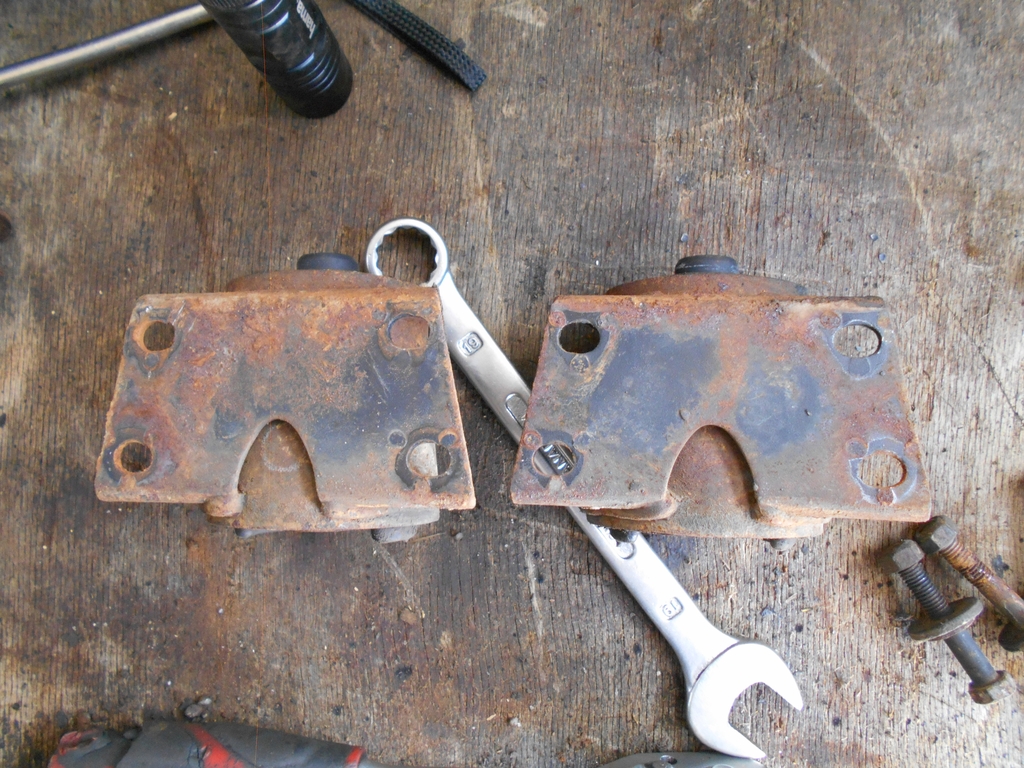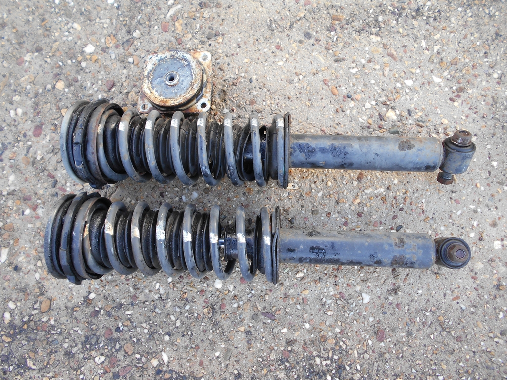 Federbeine vorne, Fahrerseite liegt oben. Die Federn sind grün markiert. Feder-Dämpfer-Einheiten hinten. Weiß markierte Federn, keine Spur von einem BOGE-Nivomat. Gut so. Das Lenkgetriebe aus dem Beitrag vom 21. Juli, der Plakette nach 1969 hergestellt. Schöne Momente, als irgendwann das silbergraue Gehäuse unter der schwarzen Dreckschicht zum Vorschein kam. Bis demnächst.