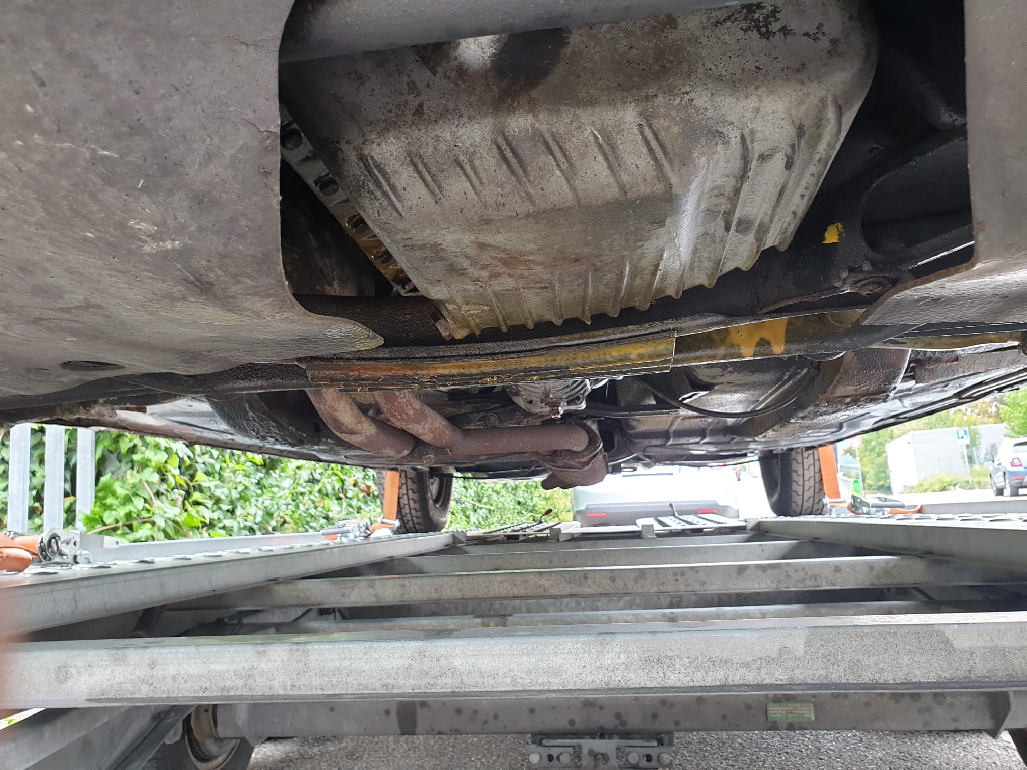 Laut Verkäufer stand er in einer Doppelgarage und die letzten Jahre in einer offenen, alten Scheune. Inzwischen weiß ich über eine Schweizer Zulassungsstelle, dass der Wagen sehr wahrscheinlich 2 Vorbesitzer hatte.