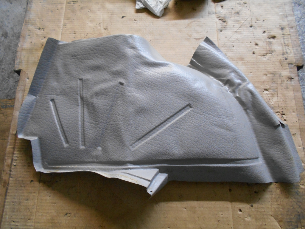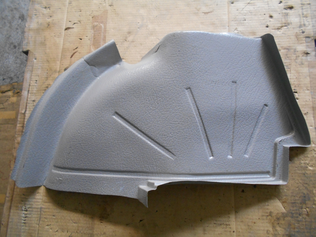 Radhausverkleidung Fahrerseite. sauber. Dieses Teil lag obendrauf, es mußte nur minimal gerichtet werden. Gegen die Risse ist nichts zu machen, kann man aber so nehmen.
