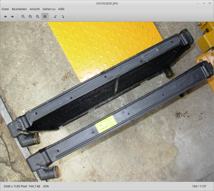 Aber erstmal brauchst Du den passenden Kühler mit der 'Kurve' im oberen Rahmen (der obere in dem Bild mit den 2 Kühlern. Du hast den unteren ...). Der hat dann auch die Löcher, um die Zarge anzuschrauben.