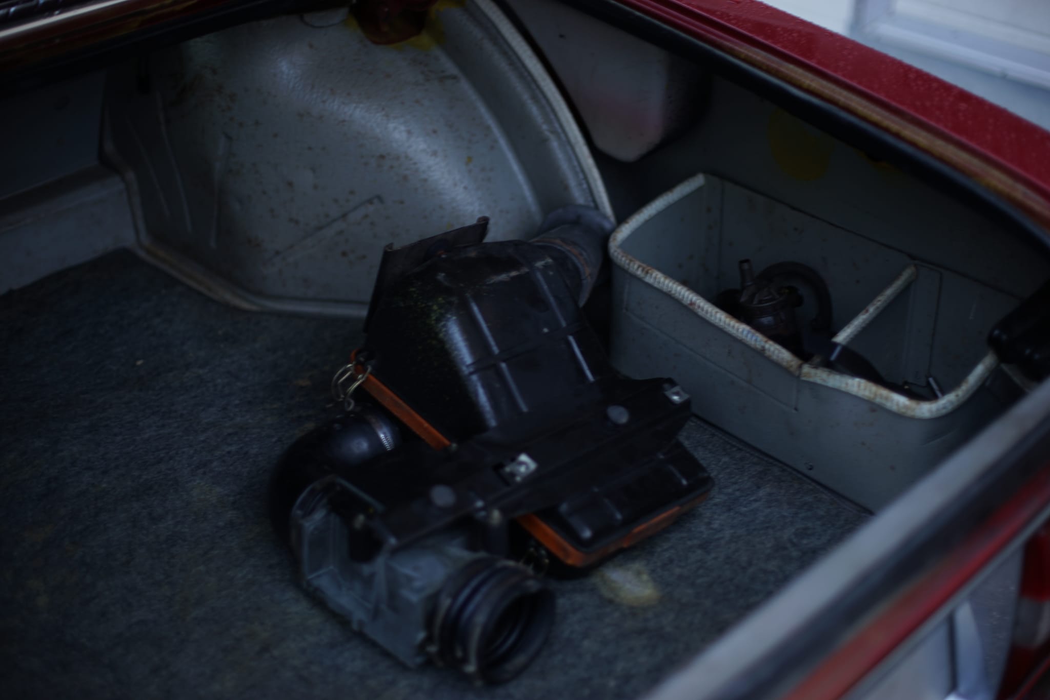 Laut Verkäufer stand er in einer Doppelgarage und die letzten Jahre in einer offenen, alten Scheune. Inzwischen weiß ich über eine Schweizer Zulassungsstelle, dass der Wagen sehr wahrscheinlich 2 Vorbesitzer hatte.