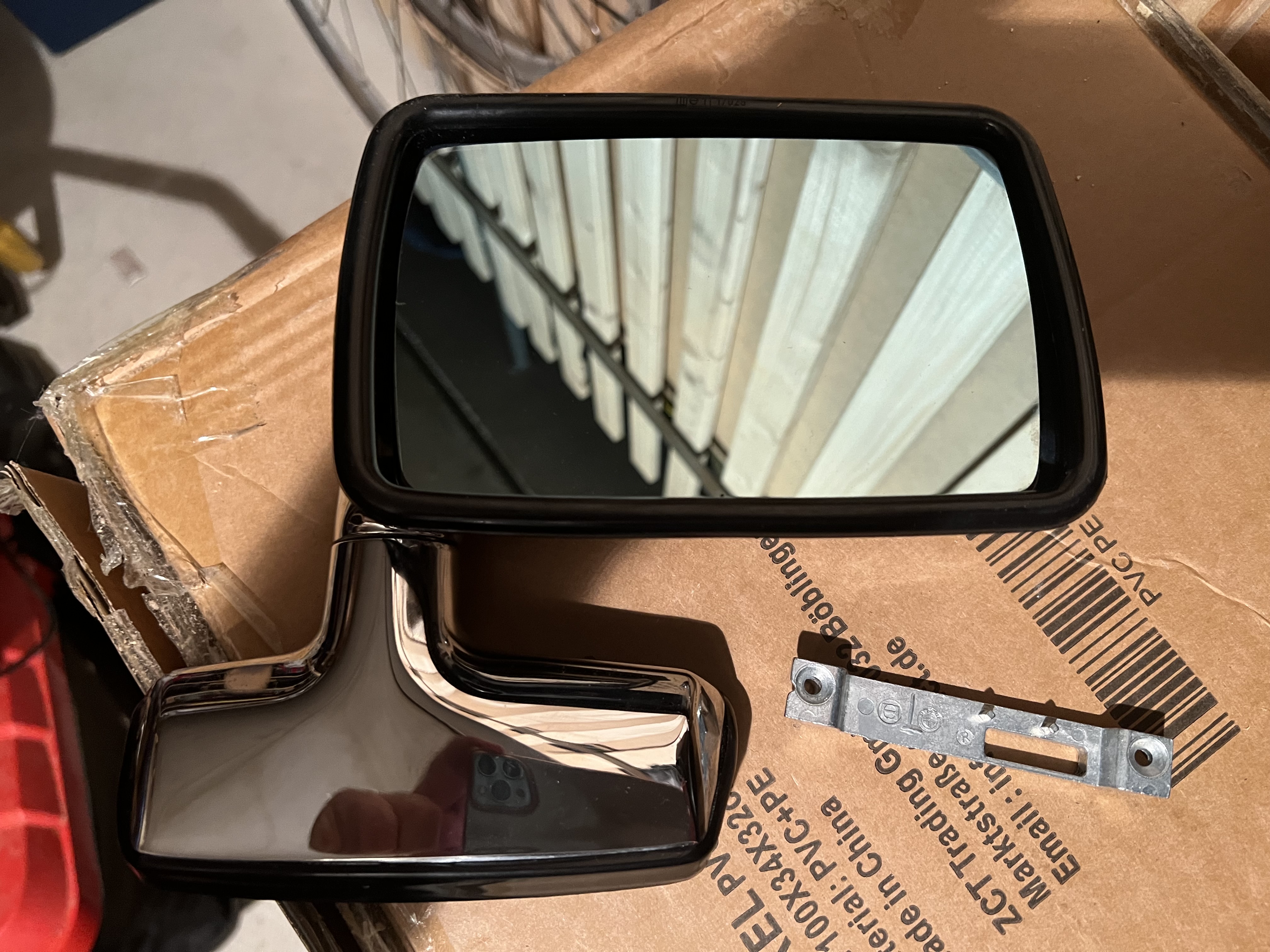Das ist ein Spiegel, der mal an einem E12 oder E21 verbaut war, mit der dicken Unterlage. Aber klar, den kann man auch an eine E3 Tür bauen. Der passende Befestigungskeil ist dabei. 2 Käfigmuttern und 2 Schrauben fehlen dir noch. Ist denn die Madenschraube im Spiegelfuß vorhanden und gängig?